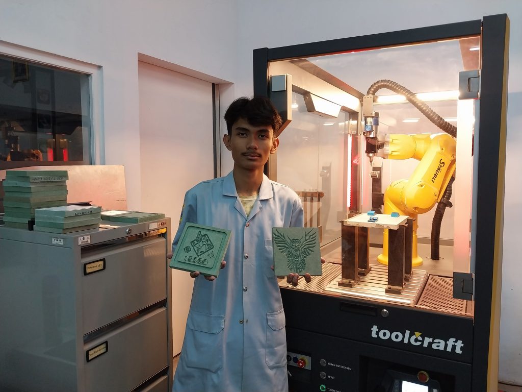 Capaian mahasiswa di Laboratorium CAM dan Robotika termasuk kemampuan menyelesaikan materi sesuai dengan kebutuhan industri dan melakukan efisiensi menggunakan teknologi otomasi yang ada.